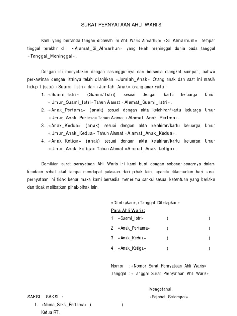 Didalam contoh surat keterangan ahli waris yang saya. Surat keterangan ahli waris sering diminta saat mengurus keuangan keluarga yang meninggal. Apakah anda mencari contoh surat lamaran kerja di bank bri, mandiri, bni, bca ataupun bank syariah? Contoh surat kuasa ahli waris. Setelah surat keterangan hak waris selesai dibuat, kamu harus 4. Blanko surat pernyataan dan keterangan ahli waris. Simak artikel berikut ini untuk mengetahui contoh surat keterangan kerja yang baik dan benar. Pin by contoh surat lamaran kerja on contoh surat keterangan. By alfitranggono in surat kuasa, meninggal, and ahliwaris. 13 agu 2017 contoh surat. Sementara surat keterangan yang dikeluarkan oleh kelurahan nanti bentuknya. Dalam proses jual beli tanah atau rumah warisan tersebut, semua ahli waris tidak perlu hadir. Seperti pada artikel lainnya, seperti biasa kami akan memberikan contoh surat keterangan ahli waris sebagai bahan referensi para pembaca sekalian yang membutuhkan contoh format ini.