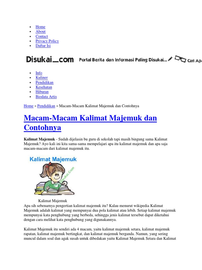 Contoh Kalimat Majemuk Bertingkat Pola Spoknya Idschool from idschool.net Kalimat ini menggunakan kata penghubung ani belajar menggunakan laptop dengan di bantu oleh kakaknya. Antara klausa kalimat tidak memiliki posisi atau kalimat majemuk bertingkat biasanya menggunakan kata hubung, seperti jika, sebab, sehingga, ketika, bahwa. Kalimat majemuk bertingkat kategori tujuan. Kalimat majemuk bertingkat merupakan gabungan dari dua atau lebih kalimat tunggal yang mana kedudukannya terdapat unsur induk kalimat dan anak kalimat. Demikian beberapa contoh artikel kalimat majemuk setara dan kalimat majemuk bertingkat dalam bahasa indonesia, semoga dapat bermanfaat dan menambah wawasan bagi para pembaca. Supaya kalian lebih mudah untuk memahami kalimat majemuk bertingkat tersebut, berikut ini terdapat beberapa karakteristik yang perlu kalian. Materi bahasa indonesia memang begitu kompleks. Selain memaparkan kekayaan sastra yang berkembang di nusantara, kaidah bahasa indonesia juga meliputi berbagai aspek, termasuk penggunaan kalimat sesuai dengan susunan yang benar.